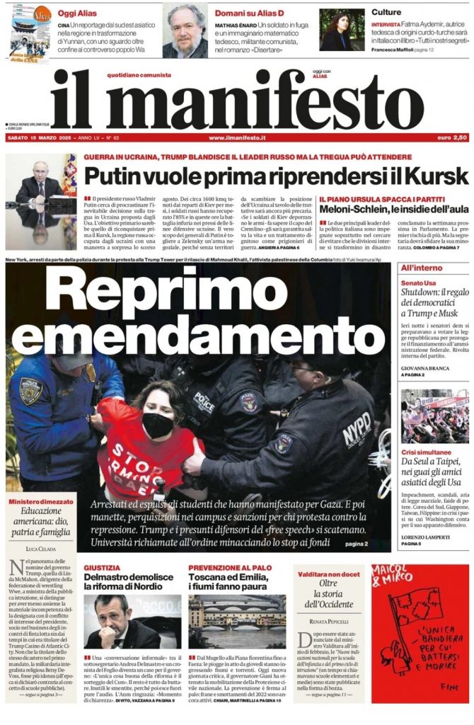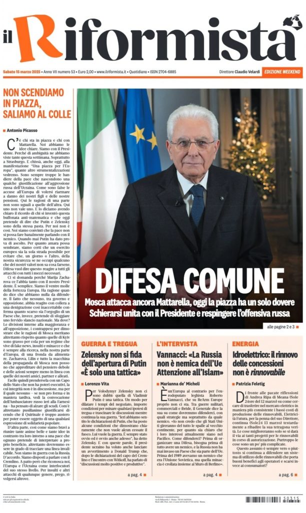 Rassegna stampa Le prime pagine di Sabato 15 Marzo 2025 Last updated: 15/03/2025 6:52 By Redazione 98 Views 0 Min Read Share SHARE You Might Also Like Cosa sappiamo delle “vacanze italiane” dei soldati israeliani coinvolti nel genocidio a Gaza Debiti con il Fisco, lo Stato potrà pignorare una parte dello stipendio degli statali Caltanissetta, annullati gli eventi di oggi a Santa Barbara Hotel assegnato a nipote Brusca.L’Antimafia avvia valutazioni. Era stato sequestrato nel 2020 Gaza, “nuovi raid: dall’alba almeno 62 morti”. Ipc: “E’ in atto una carestia”. Olanda vieta ingresso a ministri israeliani, la replica TAGGED:Le prime pagineRassegna stampa Share This Article Facebook Twitter Whatsapp Whatsapp Email Copy Link Print