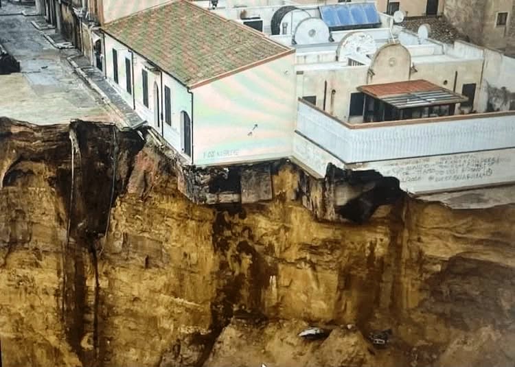 Questo, ovviamente, andrebbe fatto prima che l’edificio in cui è contenuta la biblioteca precipiti rovinosamente nel vuoto. O meglio, andava fatto. Perché ormai è evidente che l’edificio in cui è contenuta la biblioteca è in condizioni di estremo pericolo: la frana – ancora attiva – ha inesorabilmente eroso il terreno sotto una parte di esso. Basta vedere i filmati e le foto più recenti: sono chiarissimi.