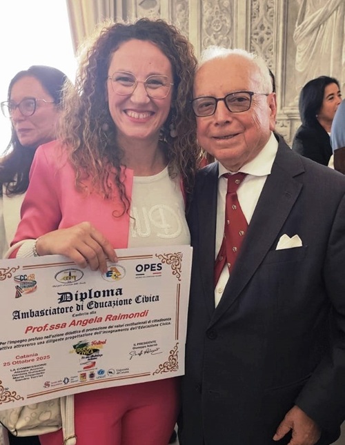 L’evento, patrocinato dal Senato della Repubblica, dalla Camera dei Deputati, dal Ministero dell’Istruzione, dalla Presidenza della Regione Siciliana, dall’Università e dal Comune di Catania, si è concluso sabato 25 ottobre presso il Convitto Nazionale “Mario Cutelli”, dove la prof.ssa Raimondi ha ricevuto il Diploma di Ambasciatore di Educazione Civica «per l’impegno profuso nell’azione didattica di promozione dei valori costituzionali di cittadinanza attiva attraverso una diligente progettazione dell’insegnamento dell’Educazione Civica».