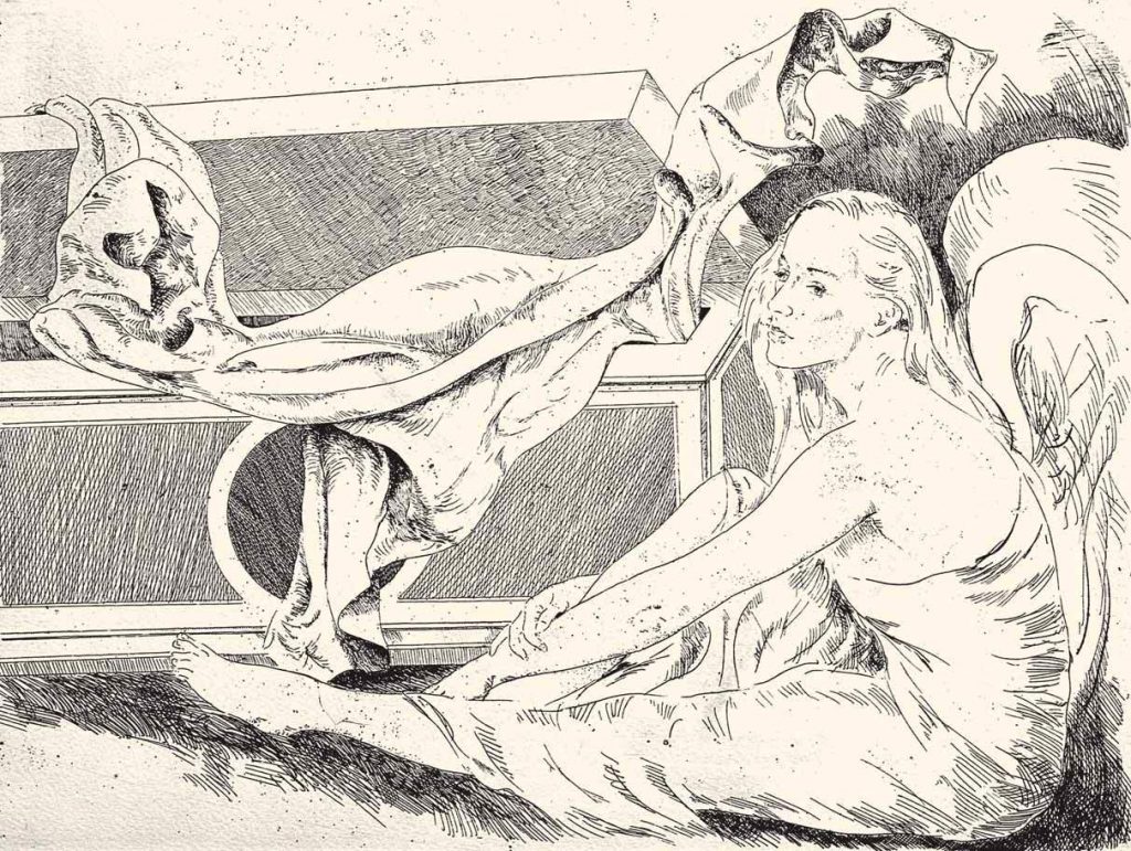 L’angelo davanti al sepolcro vuoto è un’immagine che ci invita alla riflessione e alla contemplazione della fede e della speranza. Ed è nell’angelo che Guadagnuolo si è voluto ispirare al volto di Eleonora Giorgi, nel 1985, nel creare la sua Cartella di acqueforti.