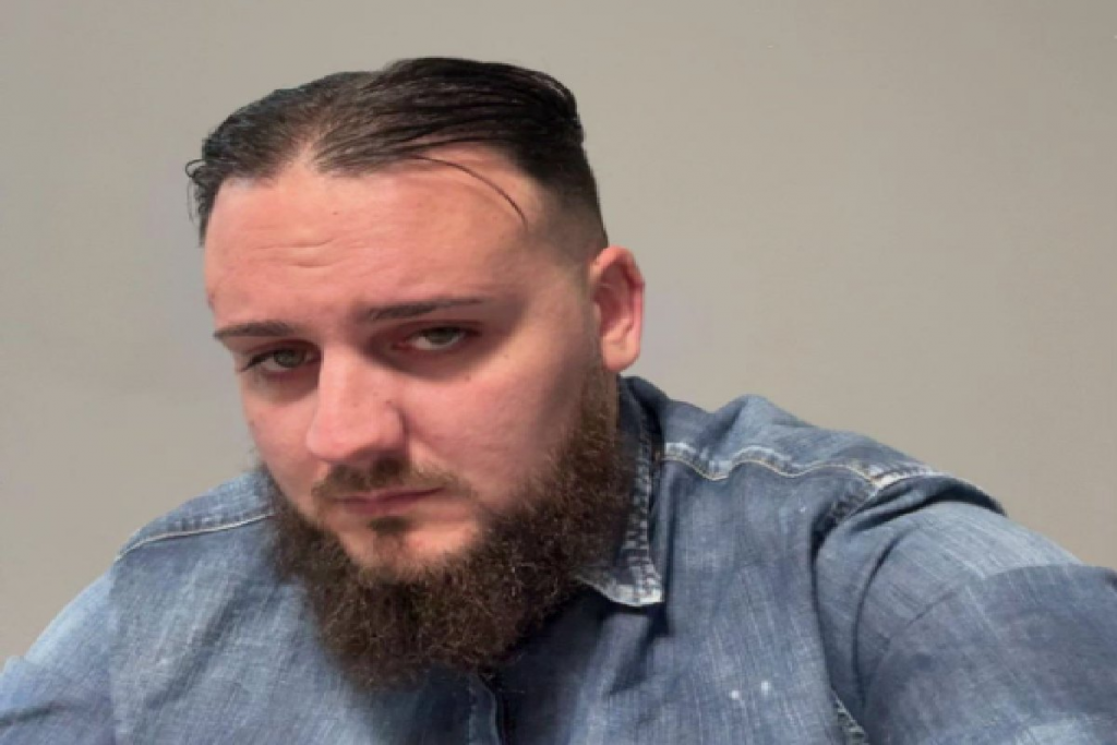 Il giovane è ritratto con la barba lunga e diverse collane d’oro, tra cui una con un pendente a forma di revolver.