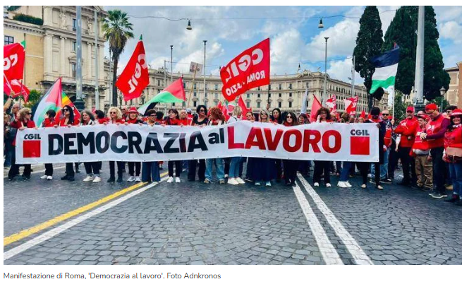 Oggi, sabato 25 ottobre, la Cgil è scesa in piazza per la manifestazione ‘Democrazia al lavoro‘. “Siamo oltre 200mila in piazza e la coda del corteo deve ancora arrivare a San Giovanni” hanno detto gli organizzatori, spiegando che la gente è scesa in piazza per chiedere “l’aumento di salari e pensioni, maggiori investimenti nella sanità e nella scuola, una vera riforma fiscale, per dire no alla precarietà e al riarmo”.