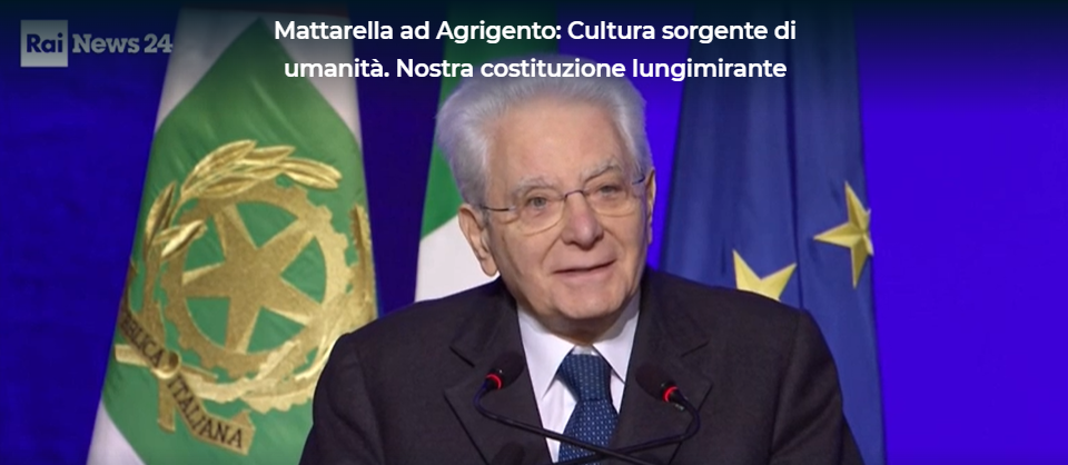 Il presidente della Repubblica, Sergio Mattarella, accolto con applausi e calore dai tanti presenti alla cerimonia, ha detto: “La cultura è una sorgente di umanità cui attingere per dotarci di nuovo dinamismo. ‘Il sé, l’altro, la cultura’ recita il tema scelto da Agrigento. La connessione tra cultura e natura – che avete posto al centro del vostro programma – è quanto mai attuale, incalzante.