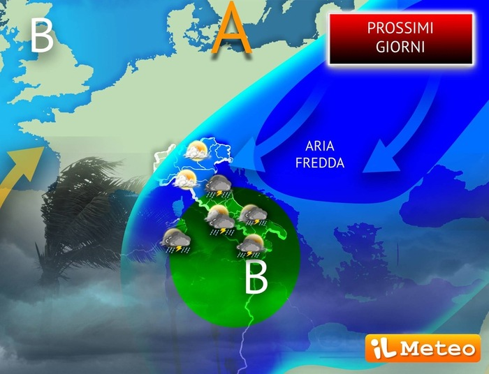 Reading: Meteo: in arrivo un’irruzione fredda, pioggia e vento nei prossimi giorni; le zone a rischio
