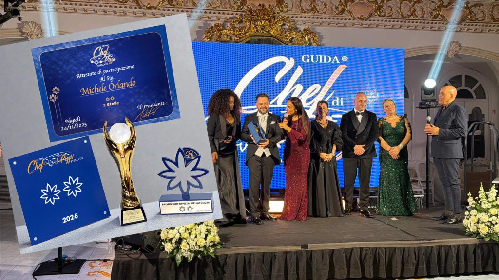 Il Castello delle Cerimonie di Sant’Antonio Abate, a Napoli, si è acceso di luci e applausi il 25 novembre per l’edizione 2025 della Notte delle Stelle, l’evento che ogni anno celebra le eccellenze della pizzeria mondiale secondo la prestigiosa guida Chef di Pizza Stellati. Tra i protagonisti assoluti della serata c’è stato il sancataldese Michele Orlando, titolare della pizzeria Extra Pizza, che ha conquistato le 2 stelle, confermando e rafforzando la prima ottenuta lo scorso anno.