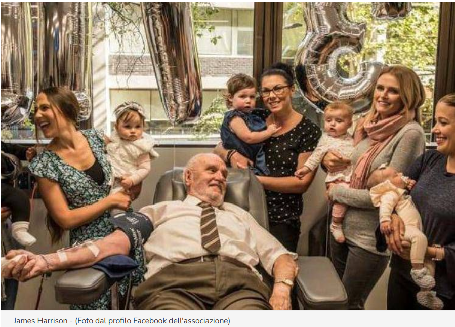 Il plasma di James Harrison, portatore di un raro anticorpo Anti-D, ha consentito la produzione di farmaci salvavita