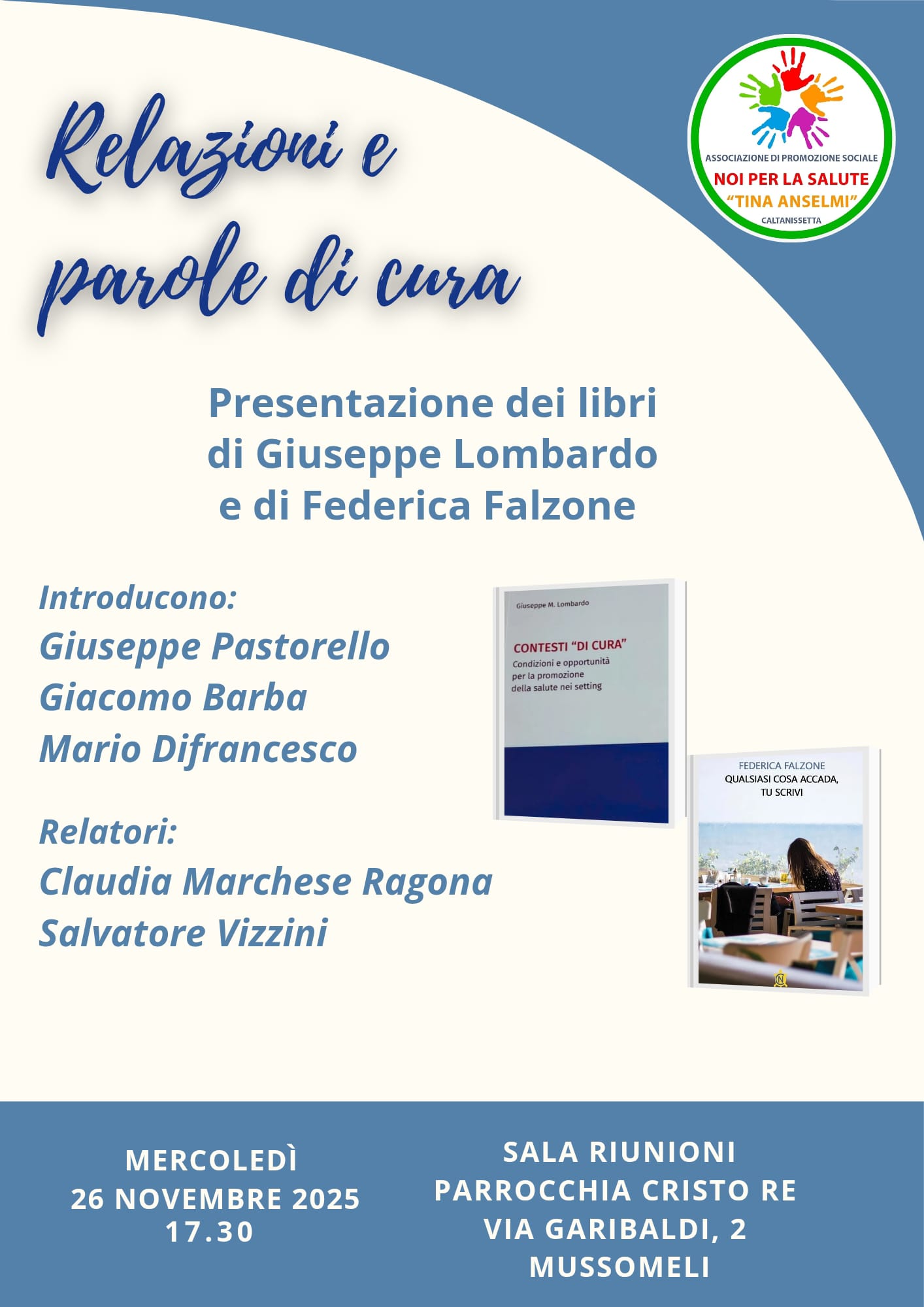 Prossimo appuntamento mercoledì 26 novembre alle 17:30 a Mussomeli, Sala Parrocchia Cristo Re, via Garibaldi 2.