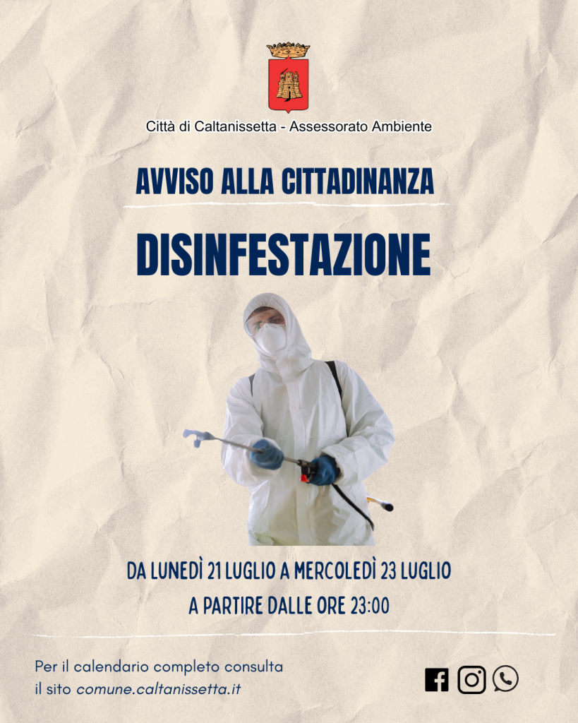 Caltanissetta 401 > News > Caltanissetta > Nuovo intervento di disinfestazione dal 21 al 23 luglio: le raccomandazioni per i cittadini