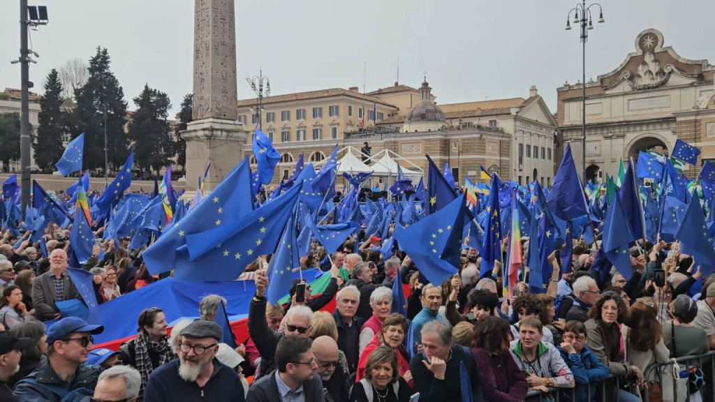 Piazza del Popolo stracolma per l’Europa, presenti 50 sindaci. Schlein: “Riarmo? Oggi niente polemiche”