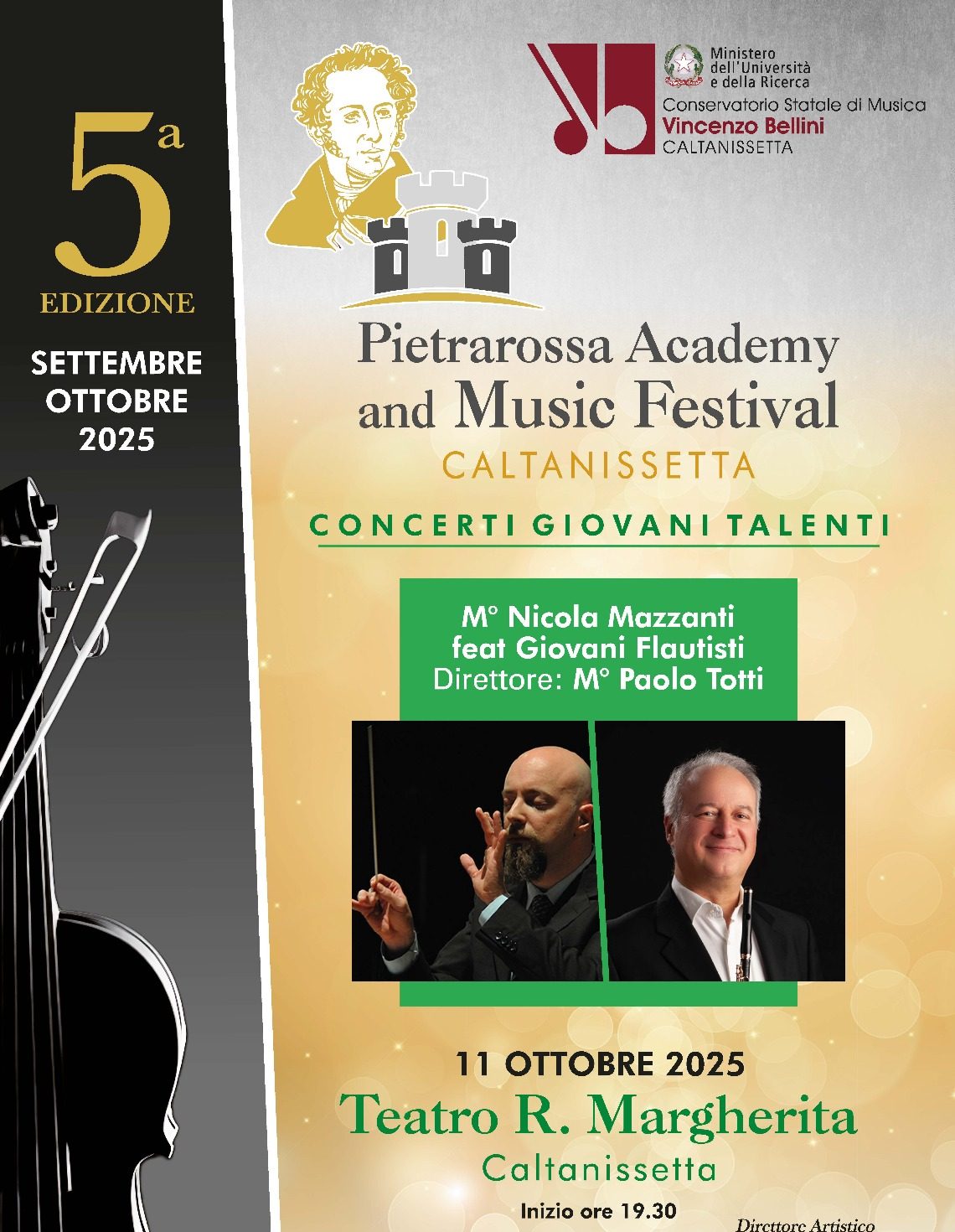 Caltanissetta 401 > News > Caltanissetta > Pietrarossa Academy and Music Festival: al Teatro Margherita il concerto dei Giovani Flautisti con il M° Nicola Mazzanti e la direzione del M° Paolo Totti. Locandina