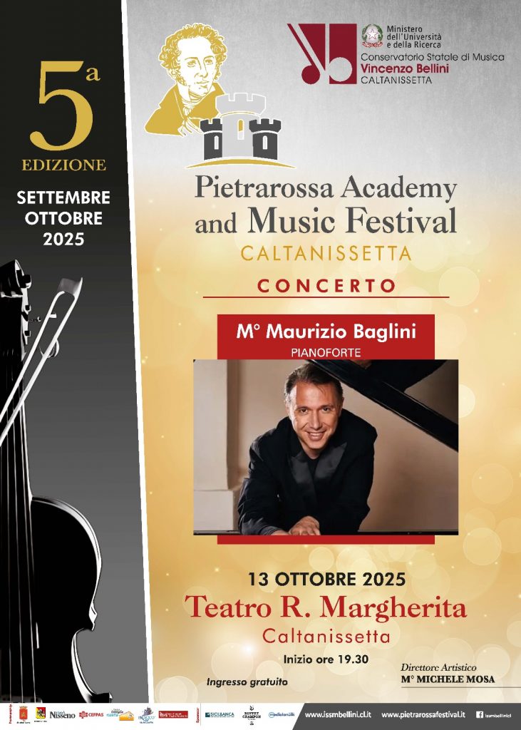 Caltanissetta 401 > News > Caltanissetta > Pietrarossa Academy and Music Festival: questa sera al Teatro Margherita il pianoforte del M° Maurizio Baglini. Locandina