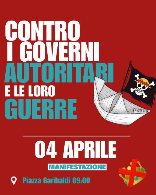 La Rete degli Studenti Medi, Unione Giovani di Sinistra, Giovani Democratici, Sinistra Italiana, Partito Democratico e CGIL scendono in piazza. Il prossimo 4 aprile, a partire dalle ore 9:00 fino alle 12:00 in Piazza Garibaldi, si terrà un presidio contro i governi autoritari e le guerre che insanguinano il mondo.