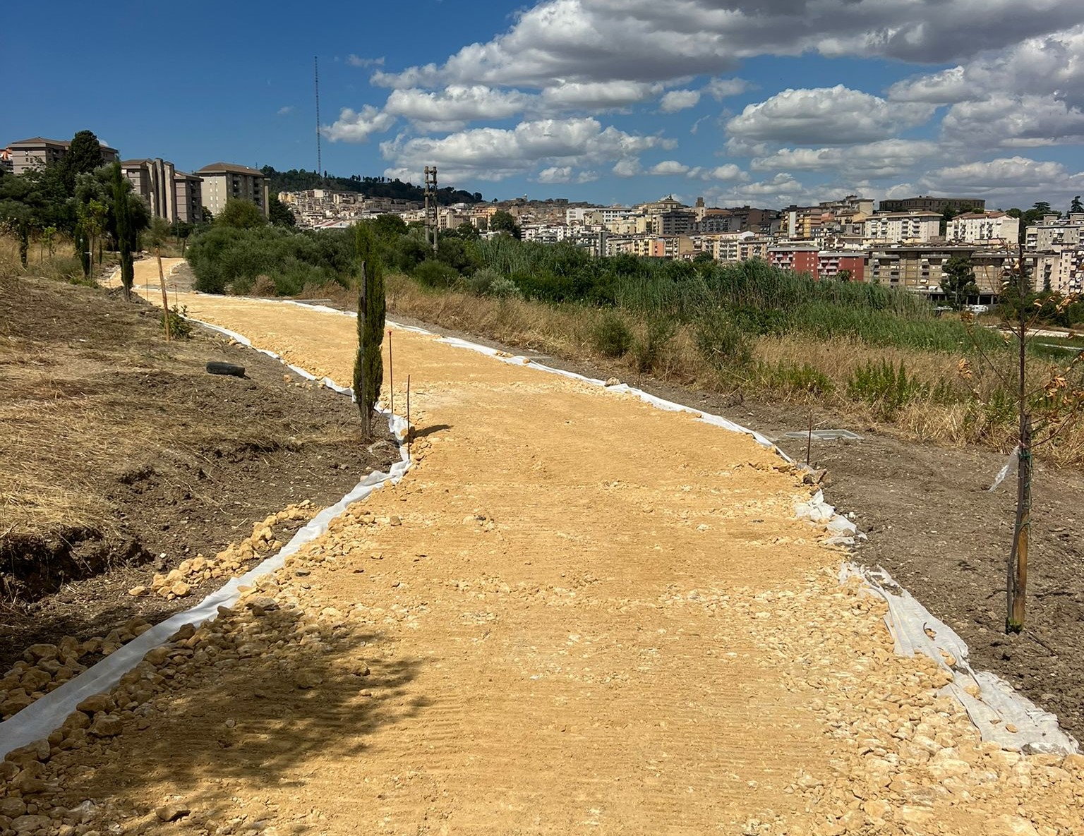 Sono in fase di realizzazione, infatti, l’impianto di illuminazione e quello di irrigazione, mentre è già stata ultimata la tracciatura della pista ciclo-pedonale, per la quale è stato utilizzato come materiale il Tout Venant (un misto naturale di ghiaia e sabbia) su cui a breve verrà riversato il conglomerato cementizio drenante.