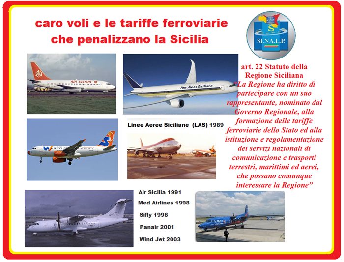 In particolare, l’articolo 22 dello Statuto della Regione Siciliana stabilisce chiaramente che “La Regione ha diritto di partecipare con un suo rappresentante, nominato dal Governo Regionale, alla formazione delle tariffe ferroviarie dello Stato ed alla istituzione e regolamentazione dei servizi nazionali di comunicazione e trasporti terrestri, marittimi ed aerei, che possano comunque interessare la Regione”, e visto tale articolo, ci chiediamo e chiediamo al Governo Schifani di conoscere chi ha nominato per rappresentare le giuste istanze del popolo Siciliano, e cosa stà realmente facendo per difendere le giuste istanze dei siciliani.