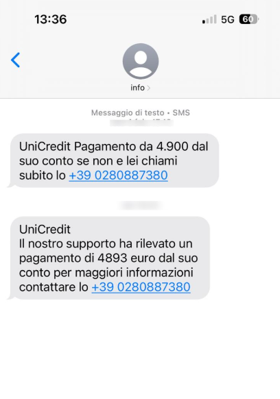 Attenzione ai messaggi che arrivano sui nostri cellulari! In questi giorni giungono sms truffaldini, da parte di (falso) Unicredit, che ci invitano a telefonare urgentemente se non si è al corrente del pagamento in corso.