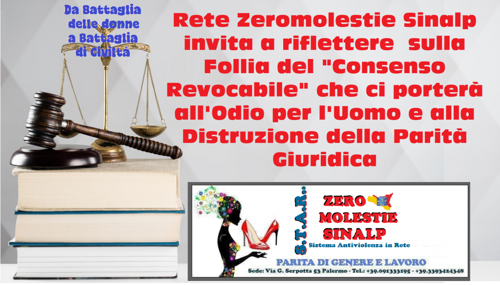 Caltanissetta 401 > News > Concorsi > Rete Zeromolestie Sinalp invita a riflettere  sulla Follia del “Consenso Revocabile” che ci porterà all’Odio per l’Uomo e alla Distruzione della Parità Giuridica