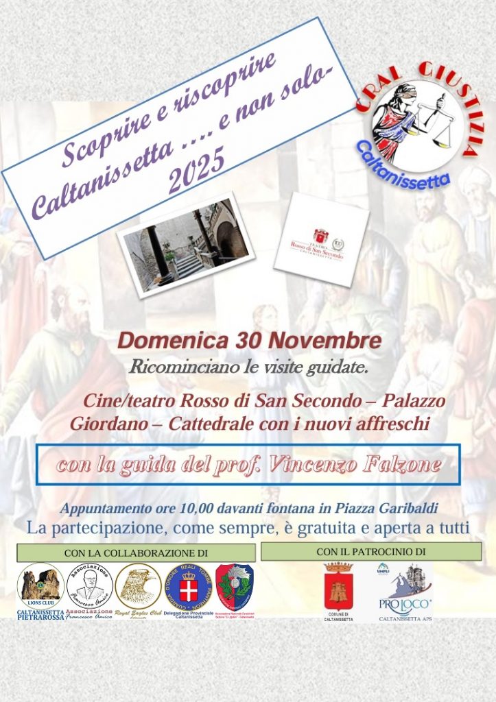 Ricominciano le visite guidate dell’iniziativa “Scoprire e riscoprire Caltanissetta …. e non solo – anno 2025”.