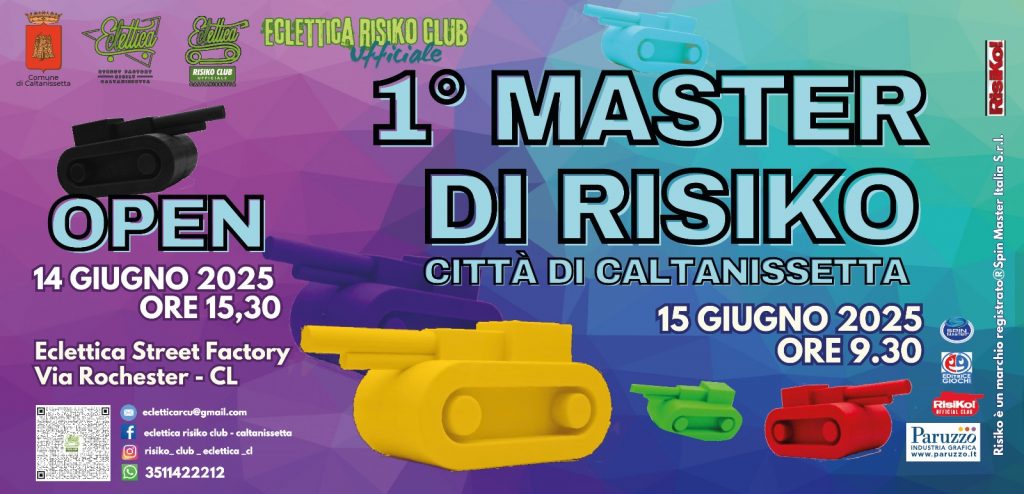 Il I° Master “Città di Caltanissetta”, organizzato dal Risiko Club Ufficiale nisseno con il patrocinio del Comune di Caltanissetta, è uno dei tredici Master nazionali assegnati  da Editrice Giochi ai RCU che si distinguono pe l’attività svolta e per il radicamento nel proprio territorio.
