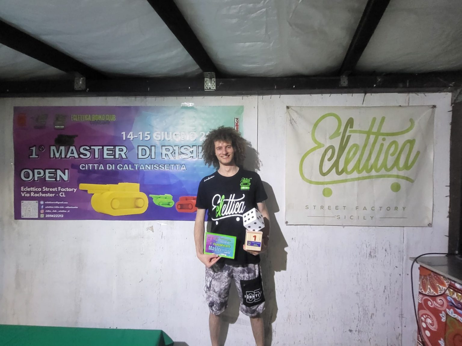 Domenica sera, presso Eclettica Street Factory di via Rochester, si è concluso il I° Master “Città di Caltanissetta” di Risiko! L’importante evento di caratura nazionale  assegnato da Editrice Giochi al Club nisseno e con il patrocinio del Comune di Caltanissetta ha visto la partecipazione di 72 tra giocatrici e giocatori, provenienti da club di tutta la Sicilia e con la presenza di giocatori di Monza, Venezia, Bologna, Genova etc. Il Master giocato nella splendida location di Eclettica Street Factory ha visto tutti i giocatori impegnarsi in due partite una di mattina ed una in primo pomeriggio. Alla fine delle due partite è stata stilata una classifica che ha visto i primi sedici accedere, divisi in quattro tavoli, alle semifinali e dopo circa due ore di partite hanno vinto i loro rispettivi tavoli, accedendo alla finale: Magdara Laconeo (Catania Il Vulcano), Mirko Ragusa (Acireale World Domination), Salvatore Mamola (Palermo Eagles) e Andrea Kiswarday (Caltanissetta Eclettica).