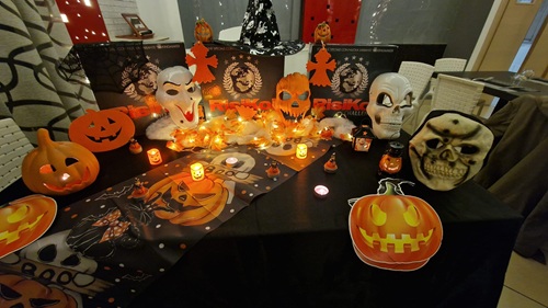 Grazie alla fantasia e alla passione della giocatrice Mariella “MaryMojito”, la sala della Nuova Locanda si e’ trasformata per 2 ore in una sala magica con atmosfere che hanno coinvolto i due tavoli da gioco e i 10 giocatori partecipanti alla serata in una divertente e intrigante serata con tanto di trucco e parrucco!