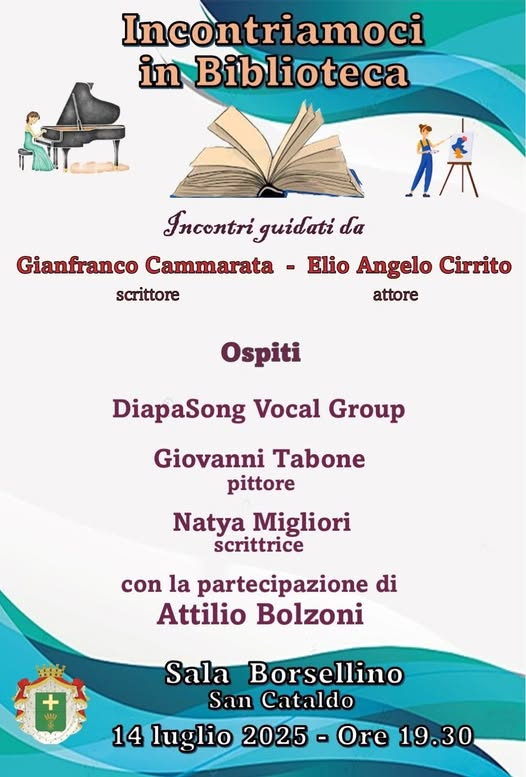 Il gruppo di lettura Incontriamoci in Biblioteca ha comunicato che il suo ultimo incontro estivo è fissato al giorno 25 luglio, per una serata di grande musica, organizzata in collaborazione con altre realtà di un territorio che ha davvero tanto da offrire