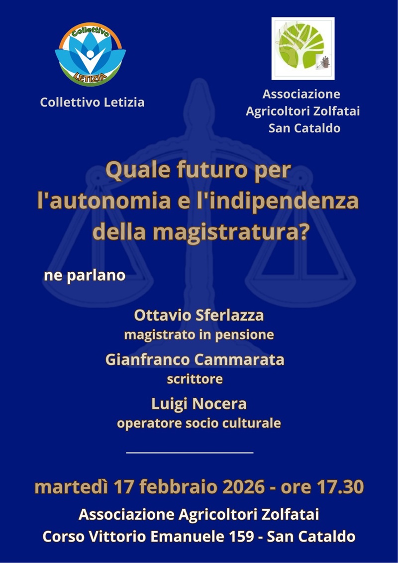 Martedì prossimo, alle 17,30, presso la società agricoltori Zolfatai in corso Vittorio Emanuele 159, a San Cataldo, si terrà un incontro informativo sul prossimo referendum che affronta il tema della riforma della Magistratura.