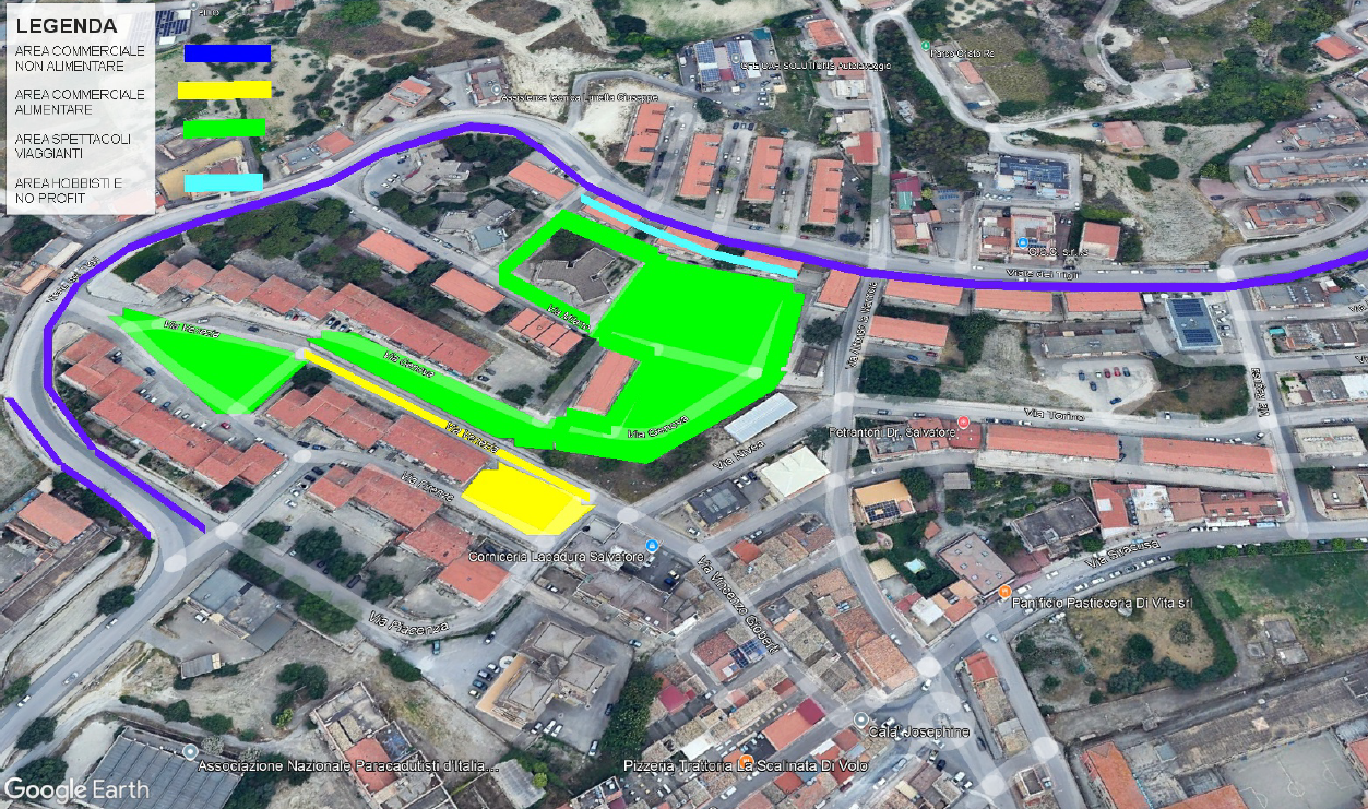 Quartiere Santa Germana, zone limitrofe e nello specifico, via Firenze, Viale dei Tigli, e Viale dei Platani, fino all’intersecazione con la scalinata che congiunge V.le dei Platani con la Via Cattaneo, (come da Allegato 01. Planimetria Generale); SPETTACOLI VIAGGIANTI