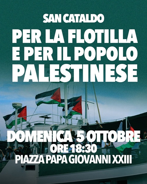 San Cataldo, Domani, Domenica 5 ottobre, alle ore 18:30, in Piazza Papa Giovanni XXIII, si terrà un sit-in di solidarietà con il popolo palestinese, promosso come momento collettivo per affermare i valori universali della giustizia, della libertà e dei diritti umani.