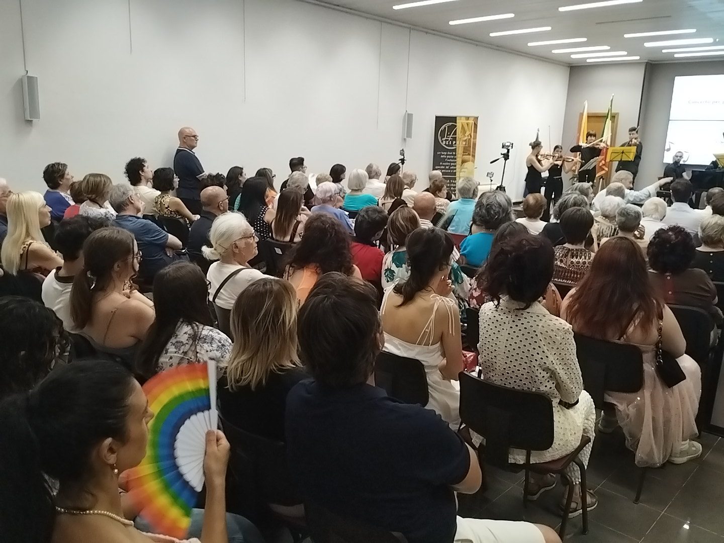 ” Abbiamo dimostrato come il donare se stessi, il volere a tutti i costi collaborare con gli altri, il cercare la relazione tra linguaggi differenti, dia risultati eccezionali. Grandi musicisti hanno donato la propria musica, potendo esibirsi su un palcoscenico preparato e fortemente voluto dagli organizzatori dell’evento. In momenti segnati da grandi tragedie nel mondo proponiamo questo modello di comunità e l’enorme affluenza di pubblico dimostra che la gente lo vuole” – conclude Gianfranco Cammarata. In effetti diverse decine di persone sono rimaste in piedi e alcuni fuori dalla sala, per cui occorrerà comprare nuove sedie.