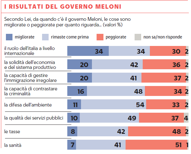 L’epoca del governo Meloni non sembra aver mutato lo sguardo dei cittadini.