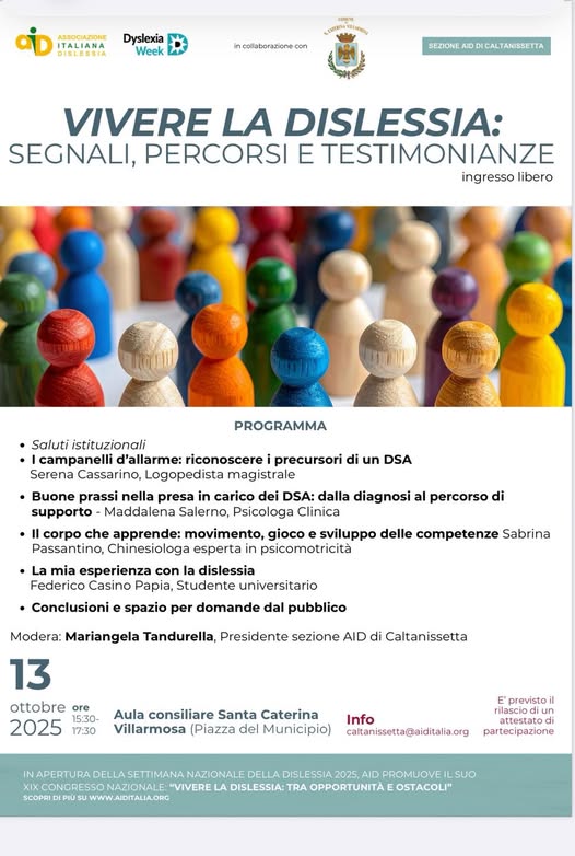 “Per il secondo anno consecutivo, il 13 ottobre 2025, il nostro Comune ha l’onore di ospitare la Giornata della Dislessia, un appuntamento fondamentale per sensibilizzare la comunità sull’importanza dell’inclusione e della didattica personalizzata per gli studenti con Disturbi Specifici dell’Apprendimento (DSA).