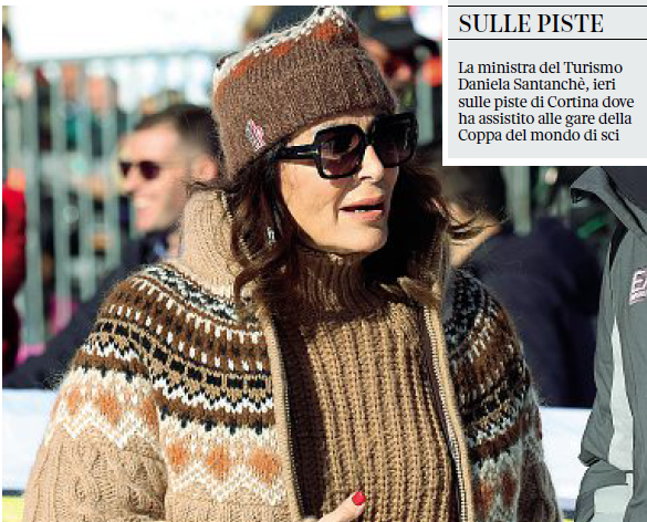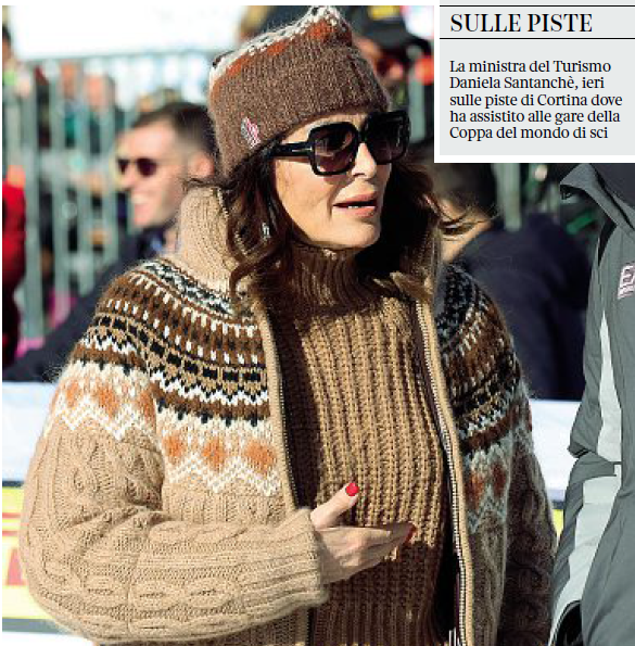 Ieri Daniela Santanché, a Cortina d’Ampezzo già da venerdì, ha partecipato alla grande giornata dello sci femminile. Forse anche per manifestare la sua tranquillità rispetto alla vicenda giudiziaria, è proprio lei a premiare all’«Olympia delle Tofane»