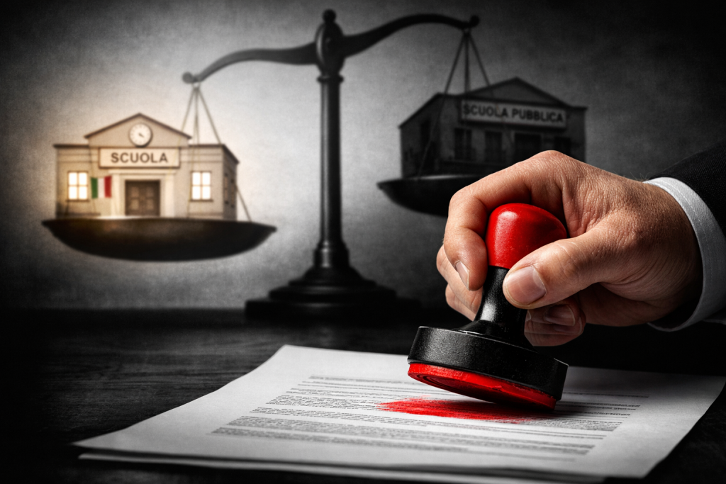 Nel frattempo la scuola statale affronta il taglio di migliaia di posti, il dimensionamento degli istituti, contratti rinnovati con risorse che coprono solo una parte dell’inflazione. I sindacati parlano apertamente di drenaggio di risorse. I costituzionalisti richiamano l’articolo 33 della Costituzione, dove la libertà di istituire scuole private è esplicitamente separata dagli oneri per lo Stato. Fiato perso.