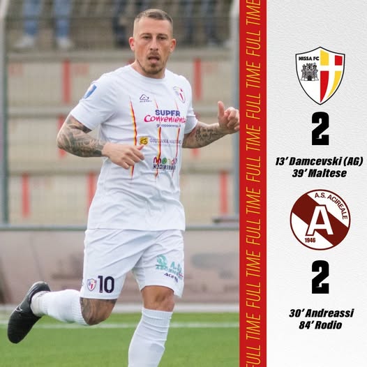 Ma l’Acireale non demorde e sfruttando l’uomo in più, raggiunge il pareggio con Rodio all’84°.