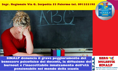 Il Segr. SINALP Sicilia Dr. Andrea Monteleone e il Delegato Scuola, Prof. Giuseppe Lombardo, richiamano con fermezza l’attenzione delle istituzioni e dell’opinione pubblica sulle sempre più critiche condizioni psicofisiche che stanno colpendo il personale docente, mettendo a rischio la qualità stessa del sistema educativo.
