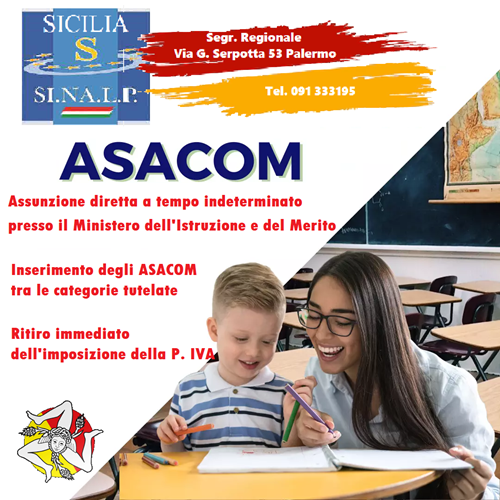 Il SINALP Sicilia ha da sempre sostenuto, in ogni sede istituzionale, che l’unica soluzione dignitosa e coerente sia la stabilizzazione contrattuale degli ASACOM come dipendenti pubblici del Ministero dell’Istruzione e del Merito.