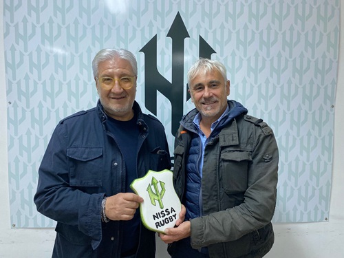 Si rinnova e cresce il solido rapporto di amicizia tra Nissa Rugby e Palermo Rugby. Un allenamento congiunto disputato al “M. Tomaselli” di Caltanissetta, lunedì 6 ottobre, è stato propizio per “cementare” ulteriormente un legame che ormai esiste da anni tra le due gloriose squadre della palla ovale siciliana. Il presidente dei nisseni, Giuseppe Lo Celso, ha regalato a Stefano Massari, numero uno dei rosanero, un crest in ceramica: piccolo simbolo di un grande sentimento.