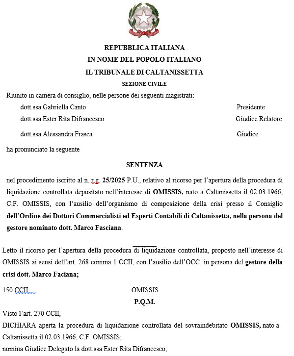 Nell’esercizio delle proprie funzioni di gestore della crisi da sovraindebitamento, il Dott. Marco Fasciana ha accompagnato con esito positivo un cittadino lungo il complesso percorso di ristrutturazione del proprio debito, consentendogli di ottenere un significativo abbattimento dell’esposizione debitoria e, soprattutto, la prospettiva concreta di una definitiva liberazione dai debiti.