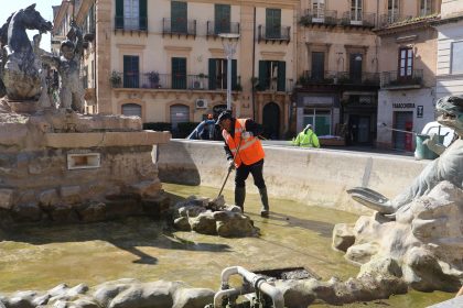 Fontana del Tritone, attività di pulizia e manutenzione in corso per analizzare le problematiche dell’impianto