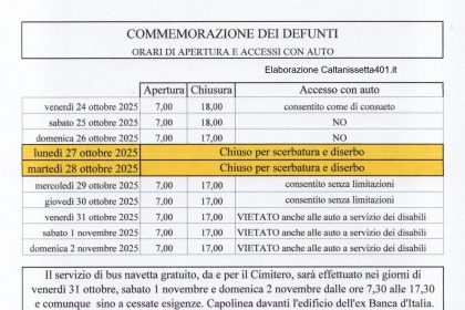 Caltanissetta: Riepilogo giorni e orari apertura del Cimitero da oggi al 2 Novembre