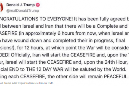 Iran, Israele e la ‘pace su Truth’: cessate il fuoco è un annuncio di Trump tramite un post