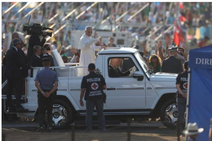 Il pontefice arrivato in elicottero, bagno di folla in papamobile prima di…