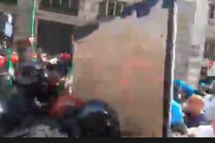 Gli agenti di polizia entrano in contatto con i manifestanti È il…