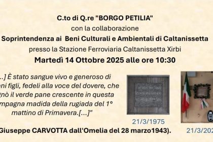 Caltanissetta:Inaugurazione con Benedizione della Targa con QR Code, nel 50° anniversario della collocazione della Lapide Marmorea in memoria dei militari cadudi il 21/03/1943. Locandina e foto