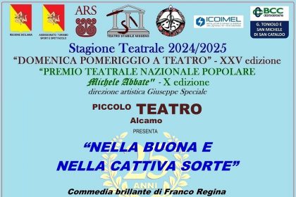 Caltanissetta: Domenica 16 marzo 2025, alle ore 18.00, al Teatro “Oasi della Cultura”, avrà luogo il nono appuntamento della XXV Stagione “Domenica pomeriggio a Teatro”, organizzata dal Teatro Stabile Nisseno