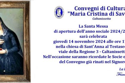 Caltanissetta: Apertura anno sociale 2024/2025 del Convegno di Cultura “Beata Maria Cristina di Savoia”