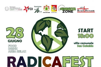 RADICA FEST – Seconda tappa | 28 giugno 2025 | Villa Comunale di San Cataldo. Musica, arte e parole per la pace, dalle ore 18:00. Locandina e foto