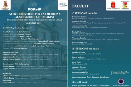 Caltanissetta:“Nuove frontiere per una medicina al servizio delle indagini. Tra ricostruzione dello scenario e cause lesive”. Venerdì 13giugno nella sala convegni di Sicilbanca a Caltanissetta