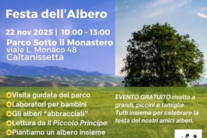Festa dell’Albero il 22 Novembre a Caltanissetta tra letture per bambini, laboratori creativi e scoperta del patrimonio arboreo. Locandina