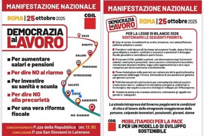Sabato 25 Ottobre la Cgil in Piazza a Roma per la manifestazione nazionale “Democrazia al lavoro”. Locandine